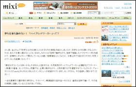 ■ ハイブリッドワーカーがmixiニュースに! (この記事への固定リンク) さて先日、ハイブリッドワーカーがmixiでニュースになりました。