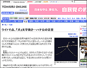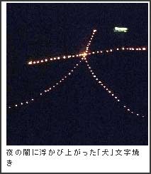 ■ 夢は叶うから、僕らは戦える (この記事への固定リンク) 5年ほど前に僕秩で書いた「大文字焼きを犬文字焼にするというネタ。」 最新のニュースを見て驚いた。 (THX>rartさん)