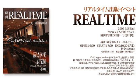 ■ リアルタイム出版イベント 続報 小学館&niftyさんと開催予定の 「トークライブがその場で本になる」というリアルタイム出版ライブ。 こちらも情報サイトがオープンしました。