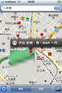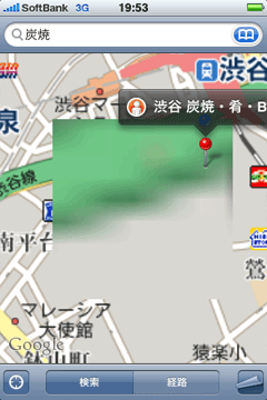 そこで登場するのがiPhoneだ。これさえあれば、その場でGoogleMAPを見ることができる。 お店の名前を検索すればその位置まで示してくれるから、 超絶に方向音痴な僕でも迷うことなく大丈夫だろ・・・