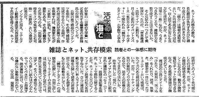 ■ 日経新聞に載りました (この記事への固定リンク) 9月に行った「瞬刊リアルタイム」のイベント。 先日10/4の日経新聞に掲載されています。