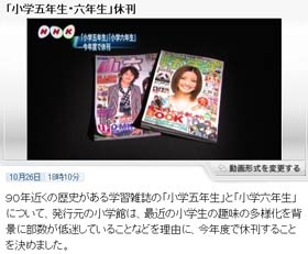 ■ 「小学五年生・六年生」休刊 さて、お便りコーナーで連載させていただいている小学六年生。 本日休刊のニュースが発表になりました。 親や友人から「休刊だってね」という連絡が多くてその影響の大きさにビックリです。