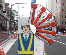 ご存知のように上の写真は、 「道路整理で手を振る動作」を行う機械だ。