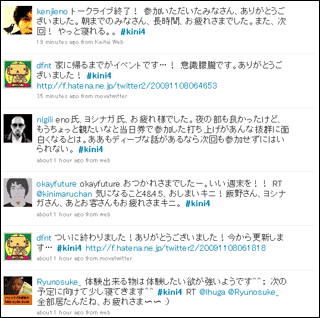 当日現地でお客様が書き込んでいたTwitterのログは、 ここで見ることができます。みなさんの感想がいろいろと見られるので、 興味がある方はチェックしてみてくださいね。