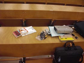 会場について、まずはプロジェクターの写りをチェック。 会場が広かったので、最後尾でも文字が読めるかどうか確かめました。