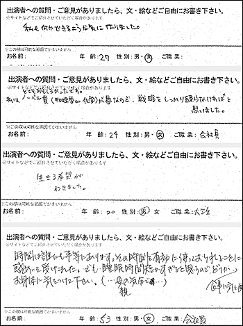 感想アンケートも、普段のお笑いトークライブとは違うものが多くてうれしいのですが、