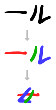 「くノ一」は「女」という文字を崩した言葉として定着しているが、 それならば「ール」も同じだ。 並び替えて考えると「ルノア女」という別の読み方に。
