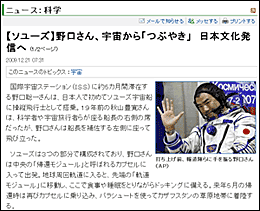 ■ 職業アカウント名でかっこよく (この記事への固定リンク) 宇宙飛行士の野口さん、宇宙から「つぶやき」というニュースを見た。