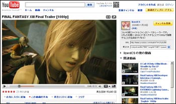 僕もとても楽しみなソフトだが、Youtubeやおもちゃ屋さんの店頭で 「FINAL FANTASY XIII Final Trailer」という最終バージョンのムービーが見れると聞いて、 さっそくアクセスして驚いた。