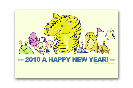 僕秩・年賀状素材2010 何も見ずにトラを書いたので、化け物みたいになったヨ☆