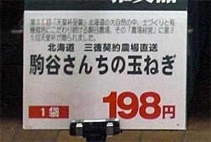 おそらく「駒谷」さんという方がおり、その家で作られた 玉ねぎなのだとは思うが、もし中国に「駒谷」という地名があって、 「駒谷産地(さんち)の玉ねぎ」 ということを言っていたのなら完全にお手上げだ。