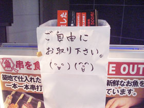 ■ 新しい顔文字 (この記事への固定リンク) 居酒屋に置かれていた手書きの紙を見て驚いた。