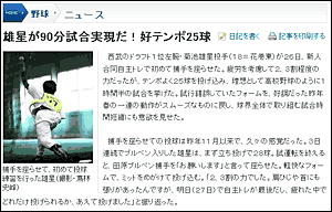 ■ 右腕の怪物ウェブサイター登場 (この記事への固定リンク) さて、話題の怪物ルーキー菊池投手だが、 なんと先日、キャッチャーを座らせたことがニュースになっていた。