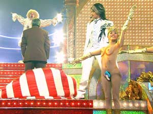 第57回の紅白歌合戦では、DJ OZMAさんが 「着てるんだけど裸にみえる衣装」を利用して話題になっていた。 (いろんな意味で)