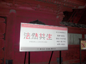 そこに書かれた「法然共生」という文字。 だがどうだろう、漢字が部分的に不自然なピンクになっていないだろうか。