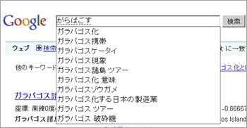 検索エンジンに「ガラパゴス」と打ち込んだら、上位に出た検索候補が