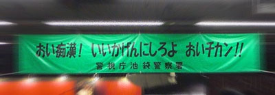 ■ 勢いだけの575 (この記事への固定リンク) 池袋駅に見慣れない緑の垂れ幕があったので、 詳しく読んでみて驚いた。