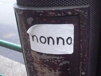 今まで無断で町に貼られるシールには暴走族的なものや 政治的なメッセージが多かったと思うが、そこに来てまさかのノンノ。