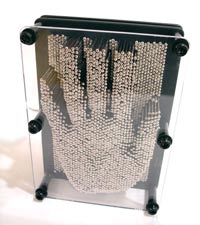 まさかの顔押し付け。 押した形に浮かび上がるピンのおもちゃ。 僕は小さい頃からあれを見るたびに顔を押し付けていたので、 ある程度大きくなってからは「大人気ない」と思われていた。