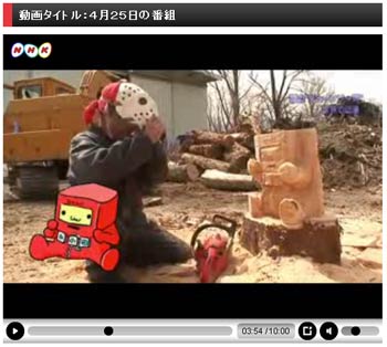 ■ DO画くんがチェンソーアートに (この記事への固定リンク) 25日の放送で、マスコットキャラのDO画くんがチェンソーアートになりました。 自分の書いた絵が木彫りになったのは初めてです・・・。