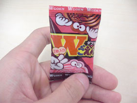 この商品、100円で10個のチョコしか入っていない。 パッケージには「Wごえん」と書かれているのだが、袋を開けてみて驚いた。