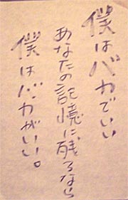 「僕はバカがいい」 という内容と照らし合わせると、 これは単なる間違いではなく、僕という漢字を間違えて書くことも全て織り込み済みで 「バカがいい」と言っているのかもしれない。 計算されたバカの演出。 本当は賢いのか・・・?!