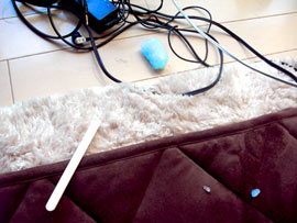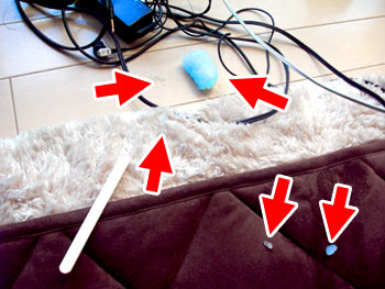 なんと、鏡の写真を撮っているときに食べていた「ガリガリくん」が溶けて落下。 部屋のじゅうたんに散乱していたのである。