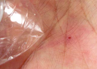 まさかの内出血。 ボトル上部が、つぶれる過程で鋭利な状態になり なんとつぶし終わった時には負傷していたのだ。 誰一人、こんなところで怪我はしないだろうというポイントで負傷する僕。