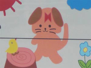 犬さんのおでこに書かれていた角ばった赤き物体。 おそらくこれは赤いリボンなのだろう。