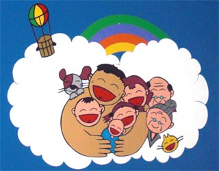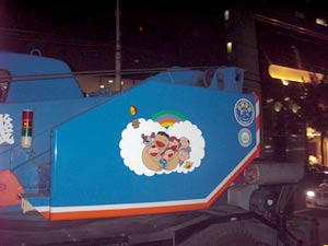 超大型の重機に書かれていた、すごいほのぼのイラスト。 雲に乗って家族旅行をしているシーンなのだろうと思うが、 よく見ると男子と女子の配置がすごい。体はどうなっているのか。