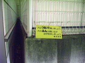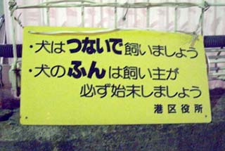 そこに書かれていた「ふん」の文字。 下品な言葉になってる!と興奮して写真を撮ったのだが、 よく見ると、単に「犬のふん」を注意する看板だ。全く縦読みしてない。