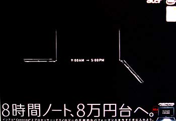 普通ノートパソコンというと、正面や斜めから撮影するのセオリーだが、 この広告は時計の針を表したいらしく、まさかの側面写真。