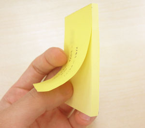 ・ ・ ・ ということで、 表と裏の微妙な判断を誤ったため、 使い始めて10秒で全体がしょぼくなった新品ポストイットの悲劇。