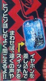 「イヤホンを差し込んでスイッチを回せば、 遠くの声やヒソヒソ話がよく聞こえるよ!!」 と書いてある。
