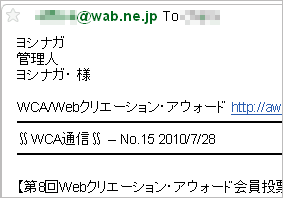 去年「Webクリエーション・アウォード」という賞を頂いてから、 定期的に主催団体からのメールが届くようになった。
