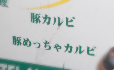 豚カルビ。 そしてその下にあるメニューは・・・