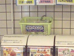 いつも見ているガチャガチャコーナーの、空カプセル入れを見て驚いた。
