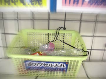 「(注)他のゴミは入れないで下さい」 と書かれた空カプセル入れ。 これまでもティッシュやガムの包み紙など、細かいゴミが入っていることはあったが、 ここに来てまさかのハンガー。