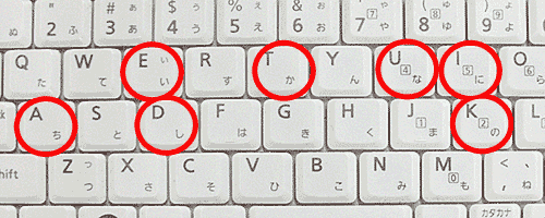 ローマ字入力で 「地下鉄で」と打ったものを かな入力に変換すると「かにのちかいかなしい」となる。