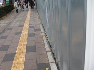 はじめは何も貼られていなかったレンガ。 初めて張り紙がされたのは、事故が多発した「ゴム製サンダルを巻き込まれないように」 という必須のお知らせだったように思う。