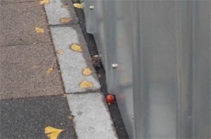 いたずらするにはあまりに巨大なこの表示。 下にあるガスメーターの大きさを見ていただければ、 とても届く距離ではないことがわかると思う。