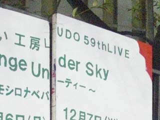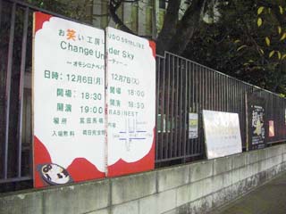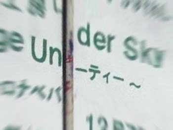 しかし、よくよく看板を見ると、2枚がそれぞれずれてしまっていることがわかった。 もともと「Change Under Sky」 「オモシロナベパーティ」という二つの単語を書いていたのだが、 板がずれたため、悲劇の単語「Un_ティー」が誕生していたわけである。