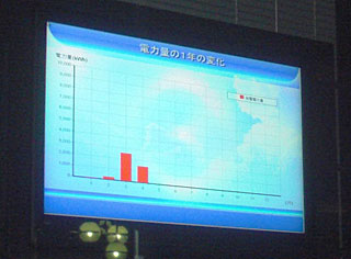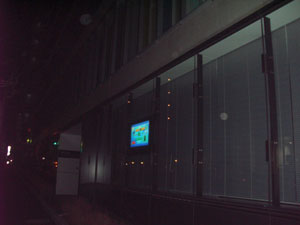 まさかのエネルギー使用削減のお知らせ。 完全に浮いている、・・・というか、なぜこの巨大モニタはついているのか。