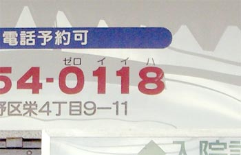 そこに書かれていた「ゼロイイハ」という番号の語呂合わせ。 「ゼロ・いい歯」という意味だと思うが、この日本語では 「いい歯が一本もない」という意味っぽい。それでいいのか。