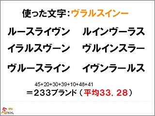どれもダサい! ということで、 文字ごとのブランド力を測定することで、 単語のブランド力は決定することができた(笑)という今回の実験。