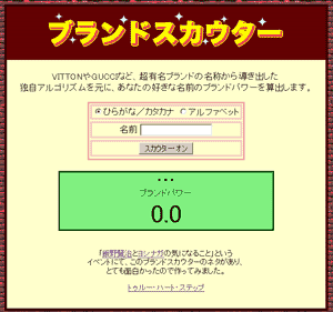 トークライブでネタにした 「かっこいいブランド名を作るシステム」を実際に作ってくださった方がいて興奮。 近いうちにご紹介します。 >挨拶 ヨシナガです。