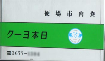 と頭をよぎったりもしたが、 下の電話番号は左から読む状態で書かれているし、 「クーヨ本日」である可能性も否定できないだろう。
