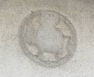 そこにあった、たぬきのような形の「のり付け」跡。 おそらく、以前はここに「たぬき」っぽいものが貼ってあったのではないか。 おそらく、鮨屋の高級イメージとたぬきがアンマッチだったのだ。
