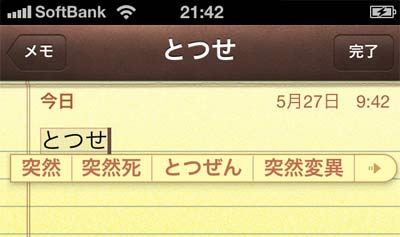 なぜ死ぬのかと思って驚きながら調べるうち、 iPhoneの変換プログラムで「とつせ」と入力すると、