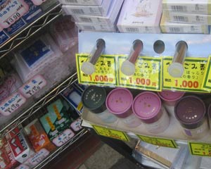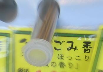 おそらく「なごみ香」という商品だと思うのだが、絶妙な位置にお香が飛び出しているため、 全て「ごみ香」に見えるというすごいポジショニング。 においを売りとした商品なのに「ごみ」。 展示としてはかなりアグレッシヴだ。